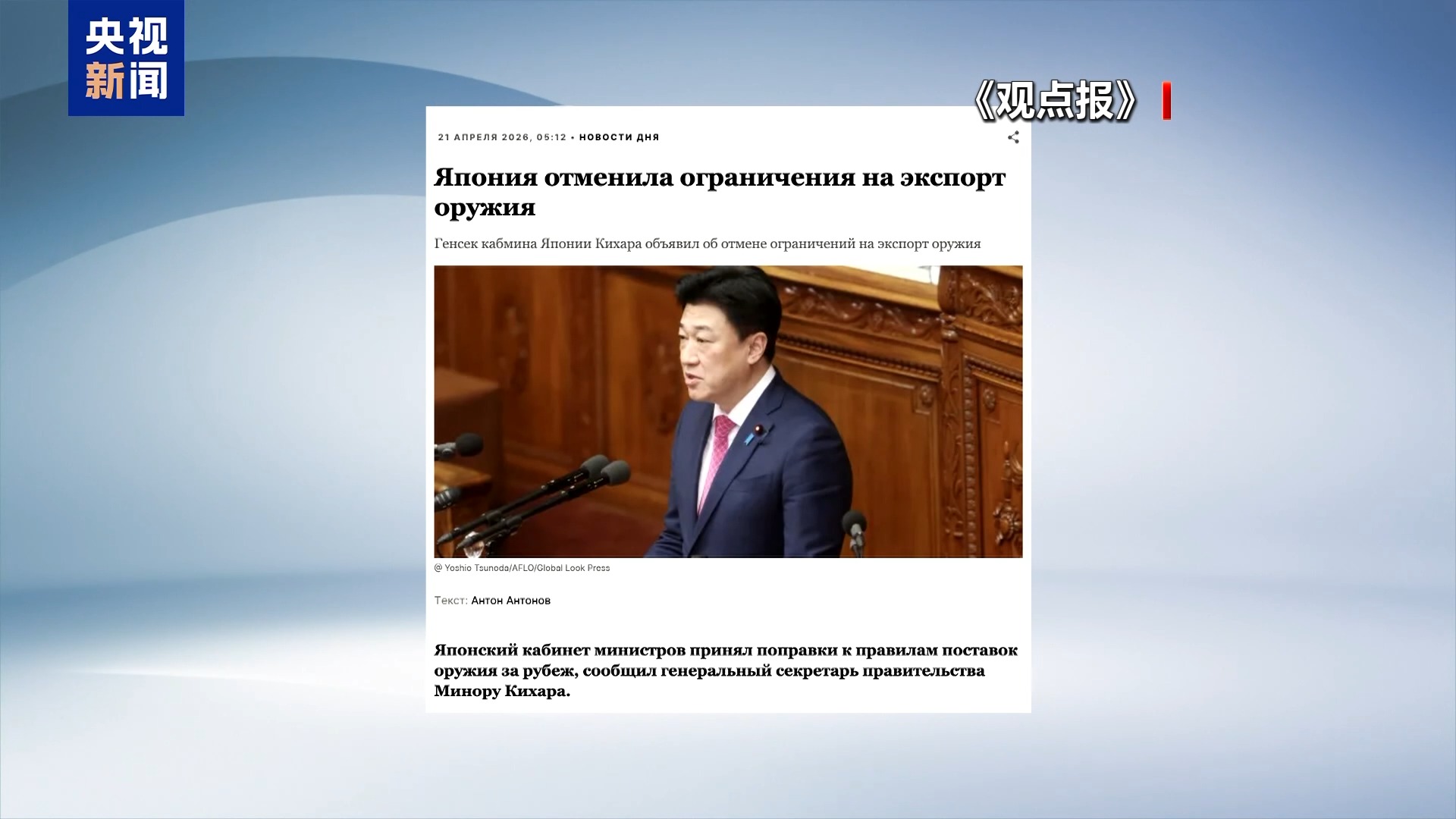 视频丨俄罗斯媒体高度关注日本修改武器出口规则